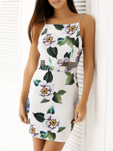 Spaghetti Strap Print Backless Bodycon Dress